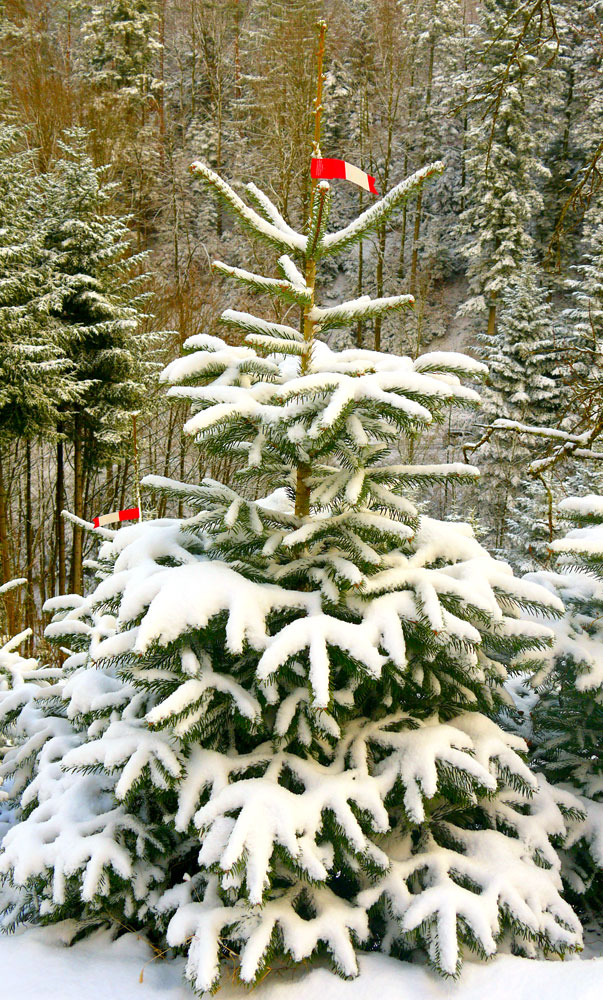 Un sapin fraîchement coupé fait durer le plaisir. Et si l’on choisit l’arbre soi-même en famille et que l’on le coupe de main propre, cela fait d’autant plus plaisir.